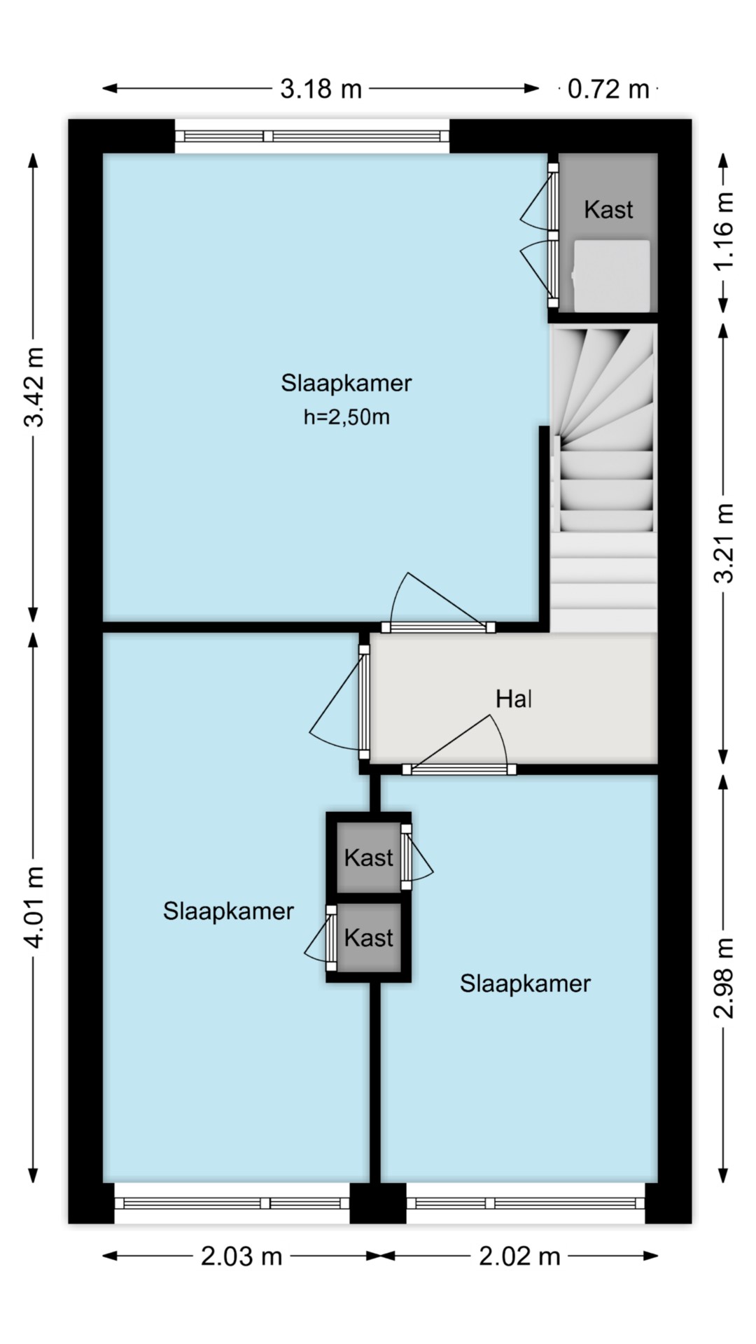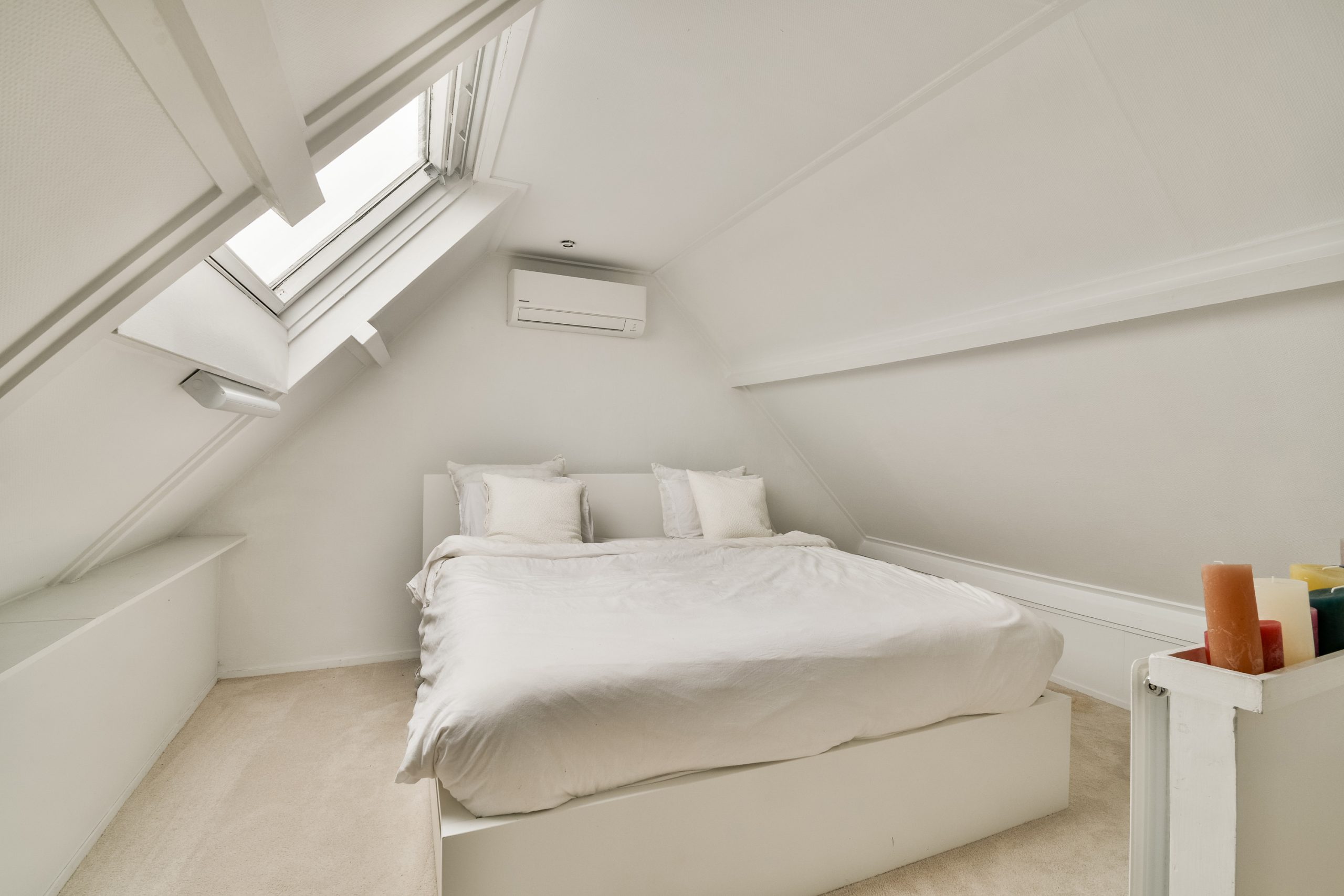 De vierde slaapkamer beslaat de volledige breedte van de woning en is uitgerust met airconditioning en een Velux-dakraam, waardoor de kamer licht en aangenaam blijft. Tevens bevindt zich hier de CV-ketel (Intergas, 2024).