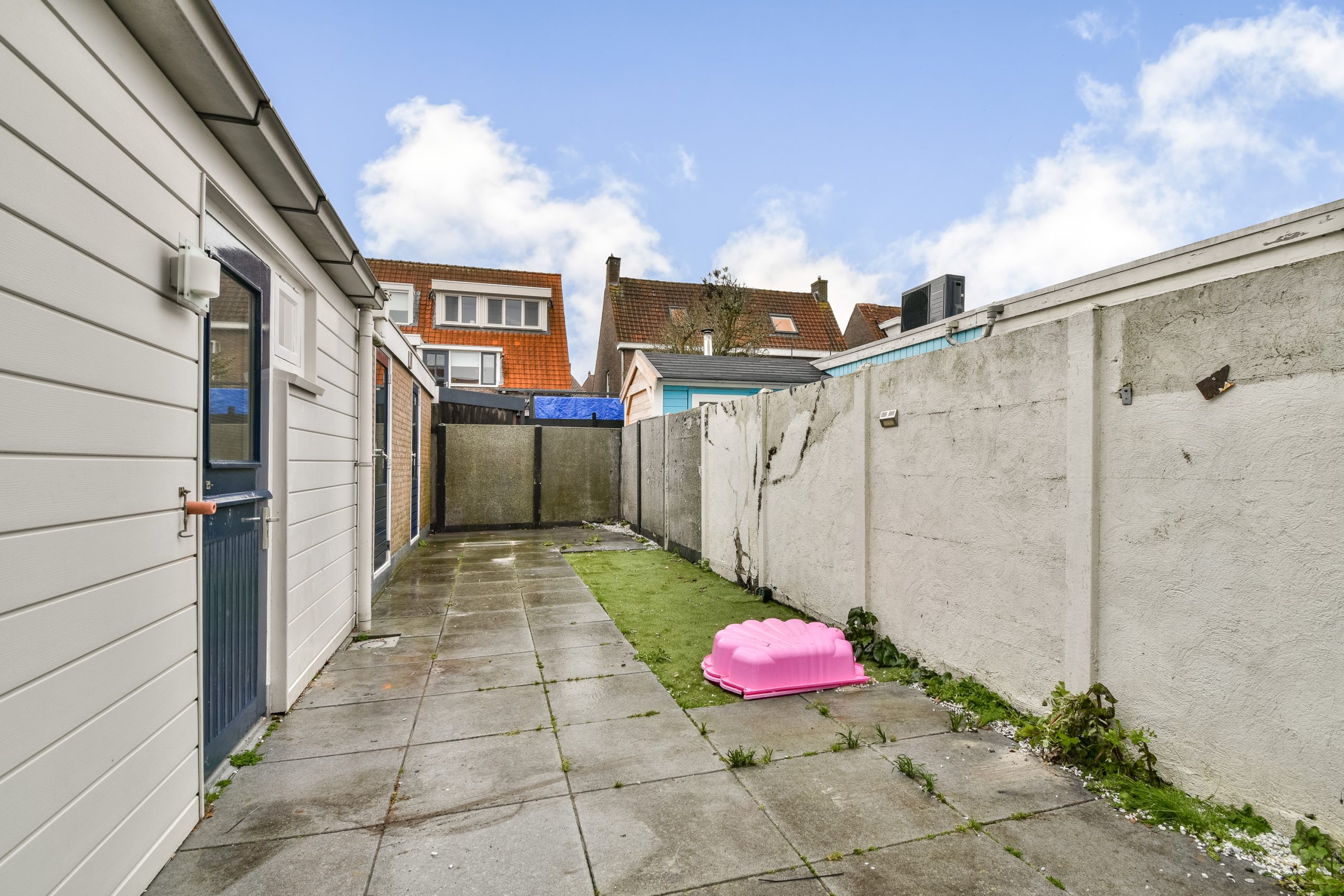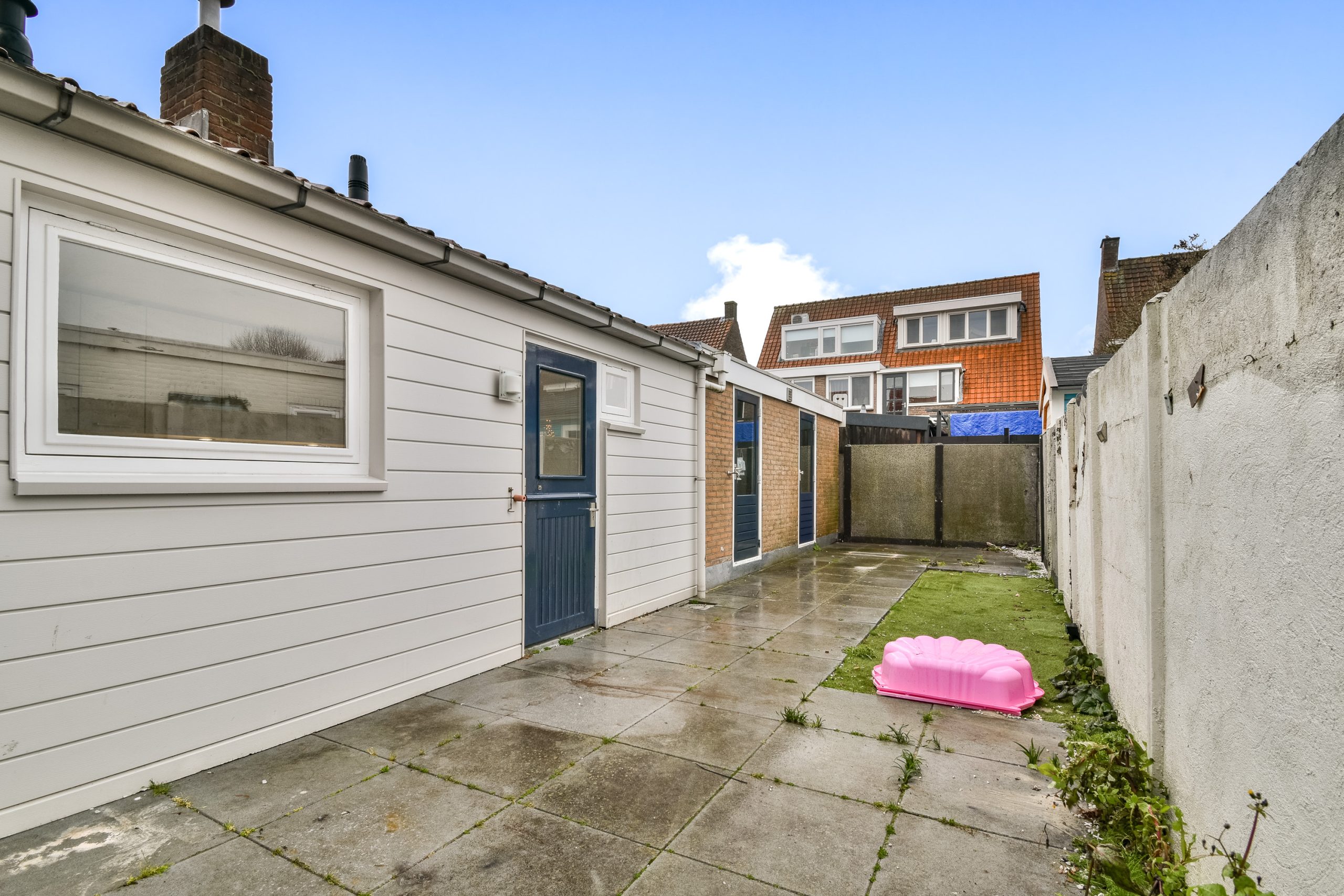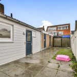 De onderhoudsvriendelijke achtertuin ligt op het zonnige zuidwesten en biedt volop mogelijkheden. De ruimte bestaat momenteel uit een deel kunstgras en het grootste gedeelte betegeling. Hier is er genoeg vrijheid om de tuin naar eigen smaak in te richten. Vanuit de tuin heb je directe toegang tot de twee bergingen, ideaal voor extra opslag, een klusruimte of het creëren van een hobby- of werkruimte. Dankzij de gunstige ligging is de tuin een plek waar je straks kunt ontspannen, genieten van de zon en gezellige momenten kunt beleven met familie en vrienden.