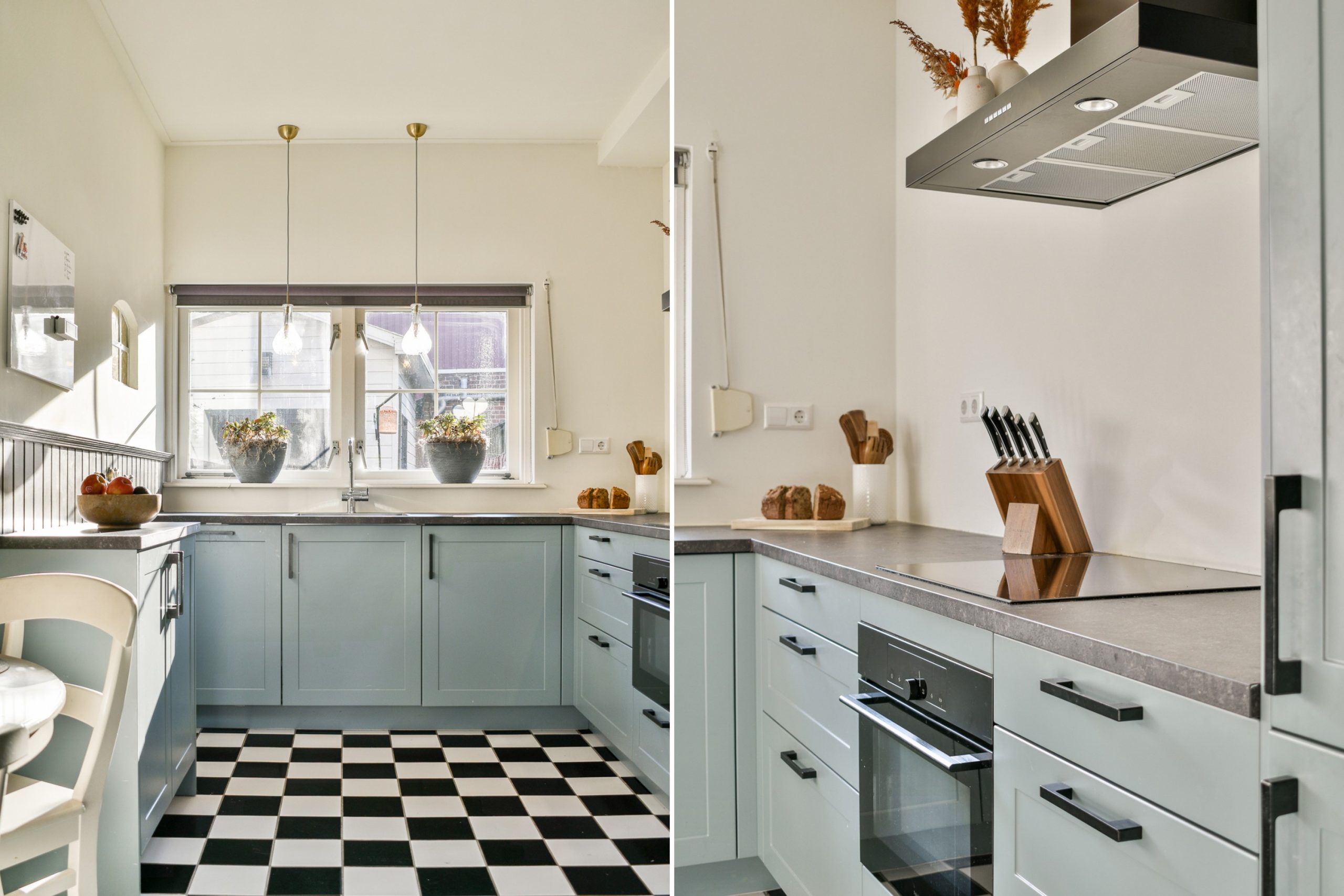 In 2023 is de keukenruimte (ca 14m²) geheel gerenoveerd en is er een stijlvolle, L-vormige keukenopstelling geplaatst welke van alle gemakken is voorzien.