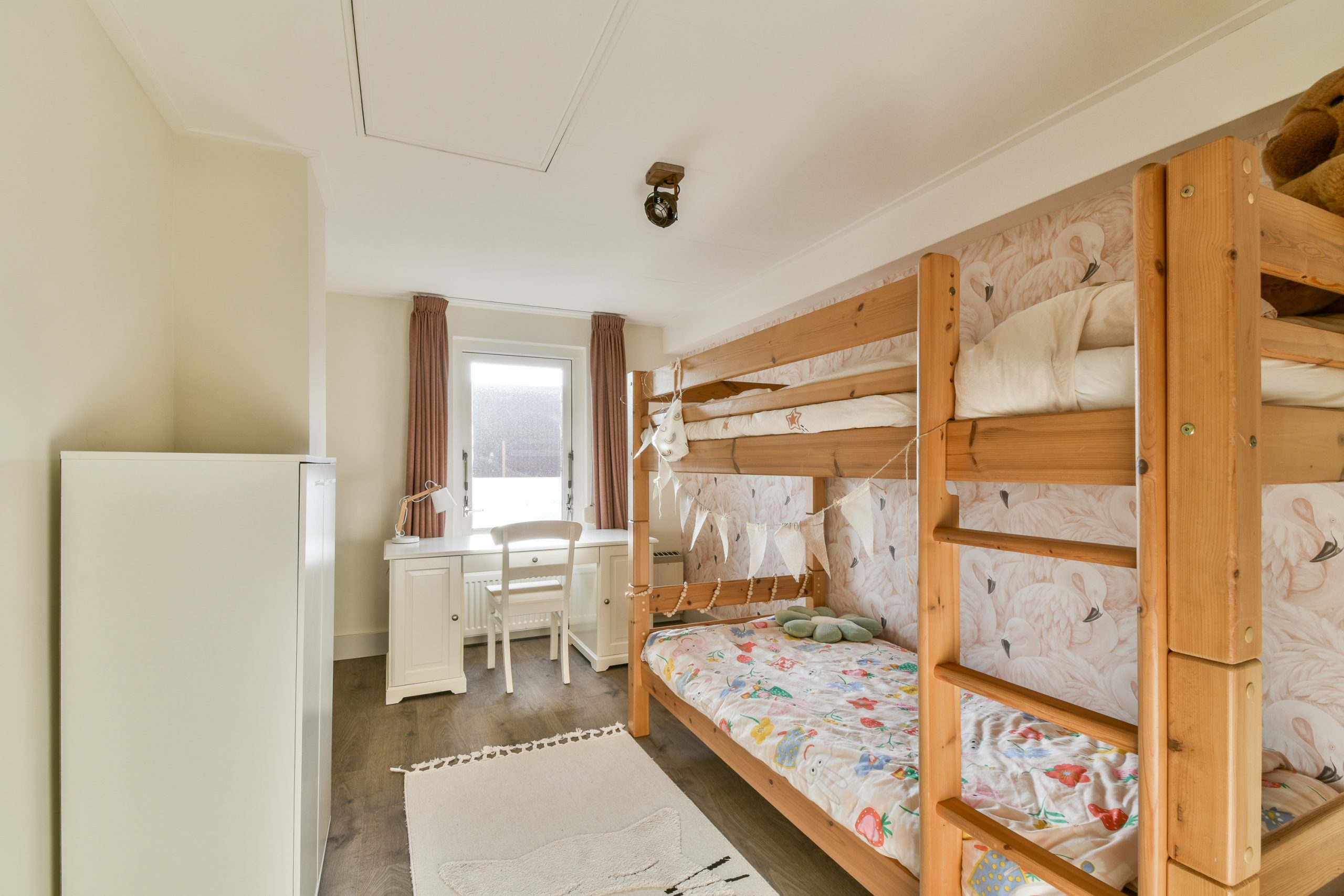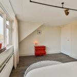 Vanaf de overloop toegang tot de drie slaapkamers, de eerste bergzolder en de badkamer. De royale ouderslaapkamer met dakkapel biedt een mooi zicht over de dijk. De tweede slaapkamer is te vinden aan de achterzijde en biedt toegang tot de tweede bergzolder. Tevens beschikt de raampartij hier over een rolluik. Ook de laatste slaapkamer is aan de achterzijde gelegen en beschikt eveneens over een rolluik. De badkamer is uitgerust met een ligbad voorzien van douchegelegenheid, een wastafel en een designradiator.