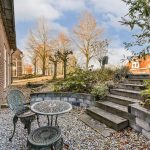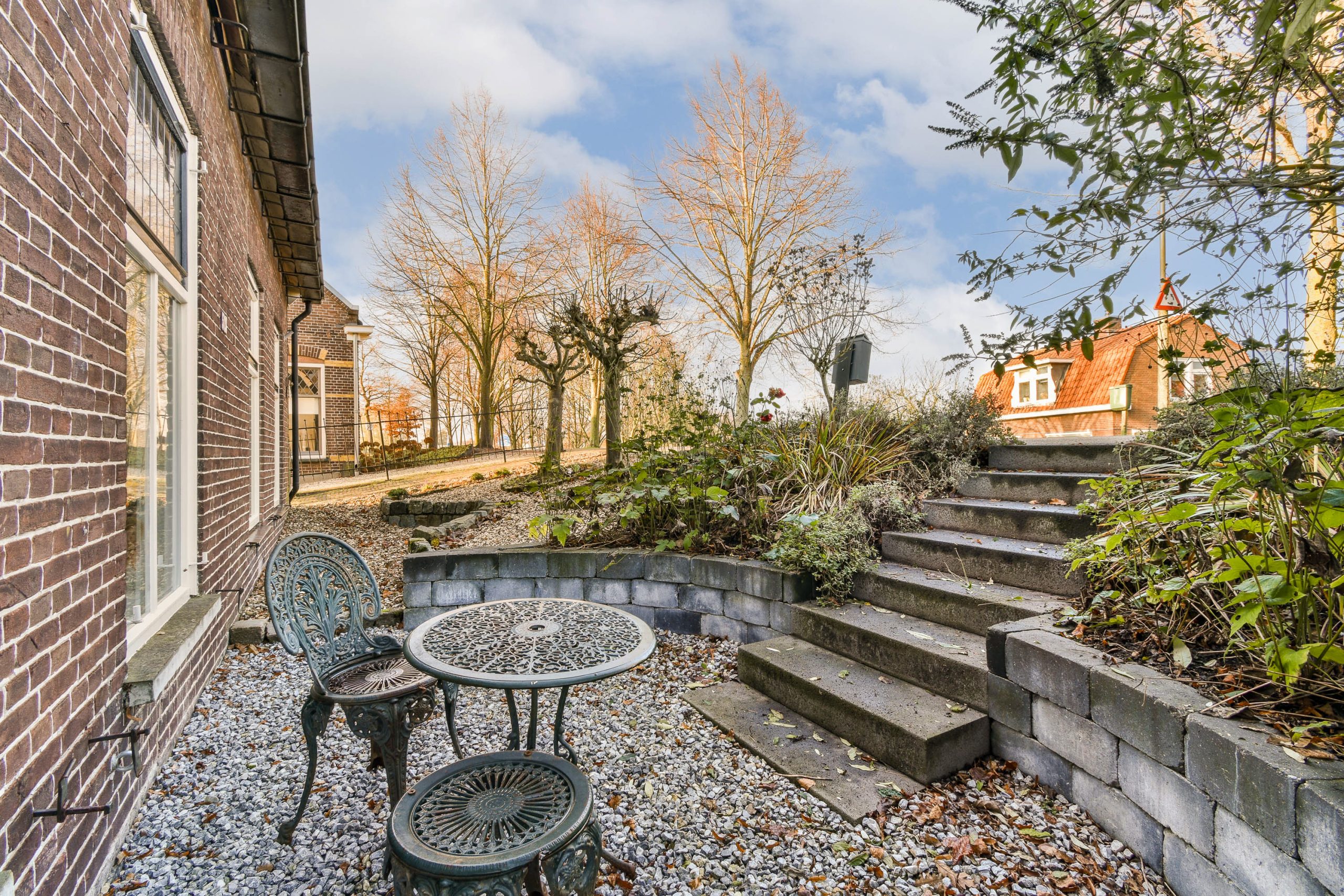 De voortuin is aan weerszijden uitgerust met groene borders en verwelkomt je met een trapje. Tegen de gevel ligt een grindborder met een gezellig zitplekje, perfect om te genieten van een kop koffie of van de ondergaande zon.