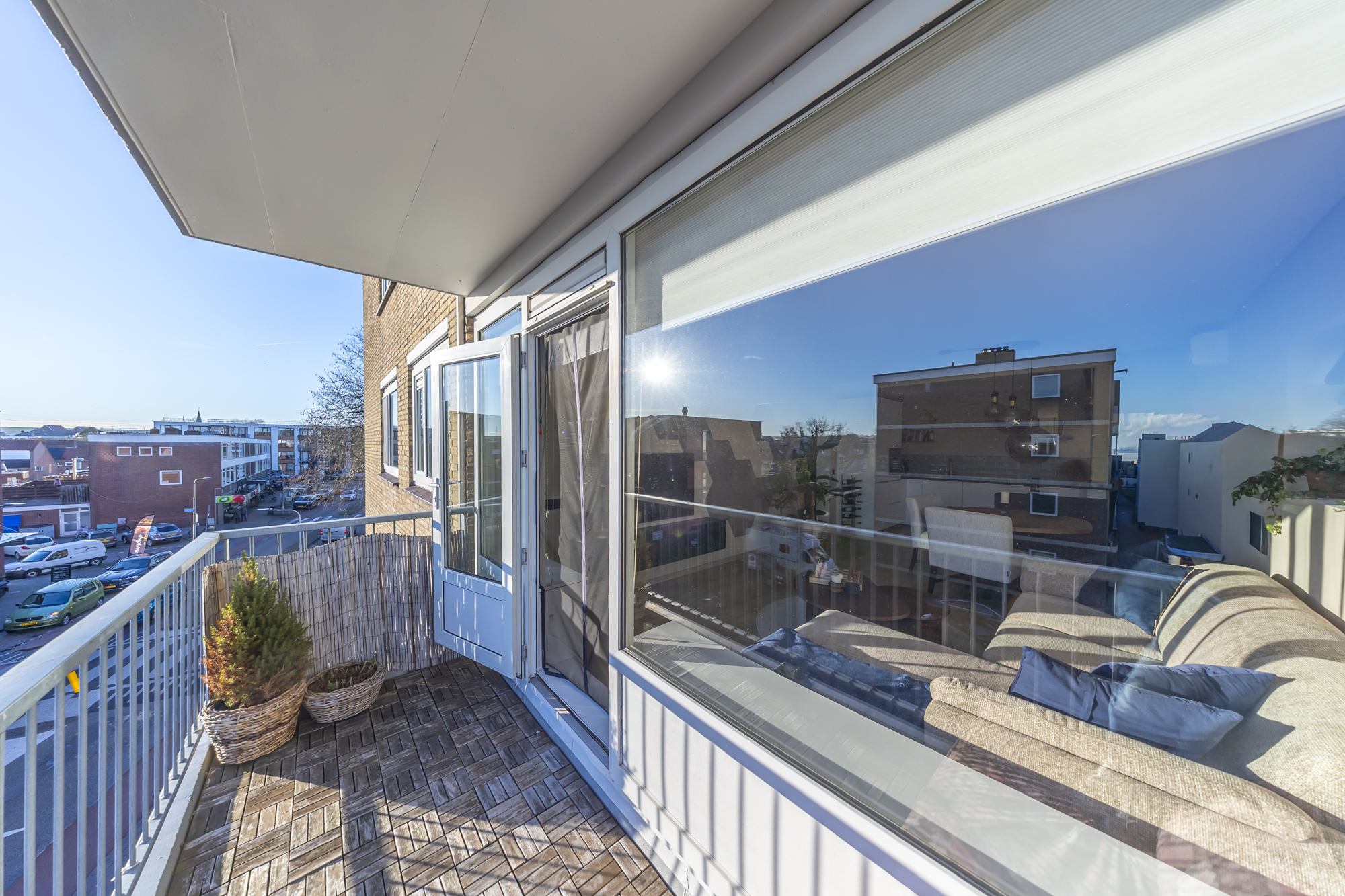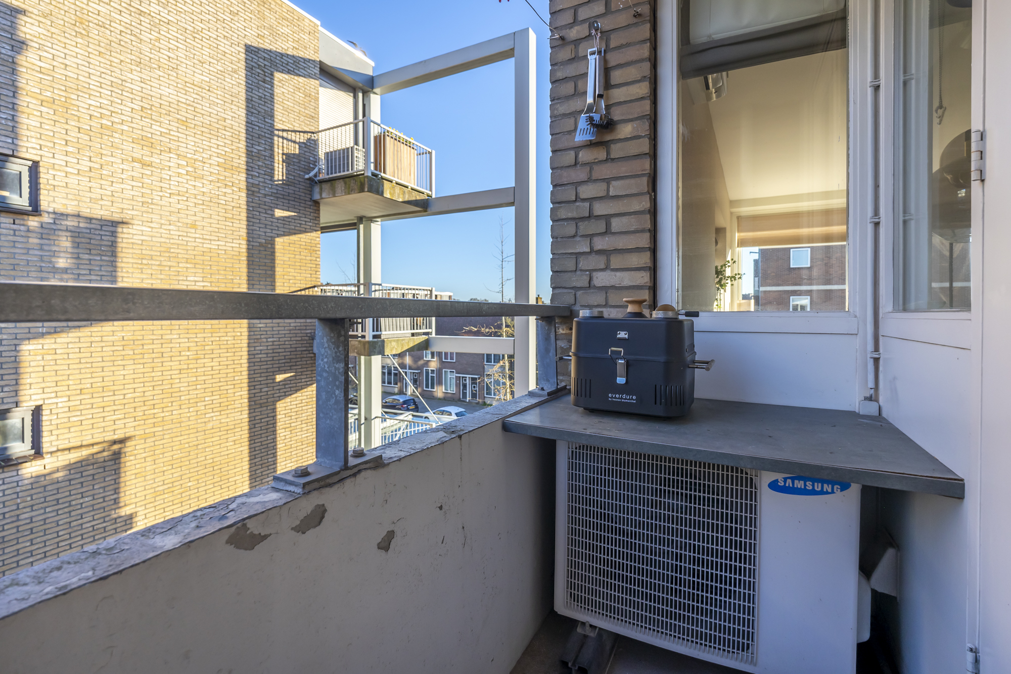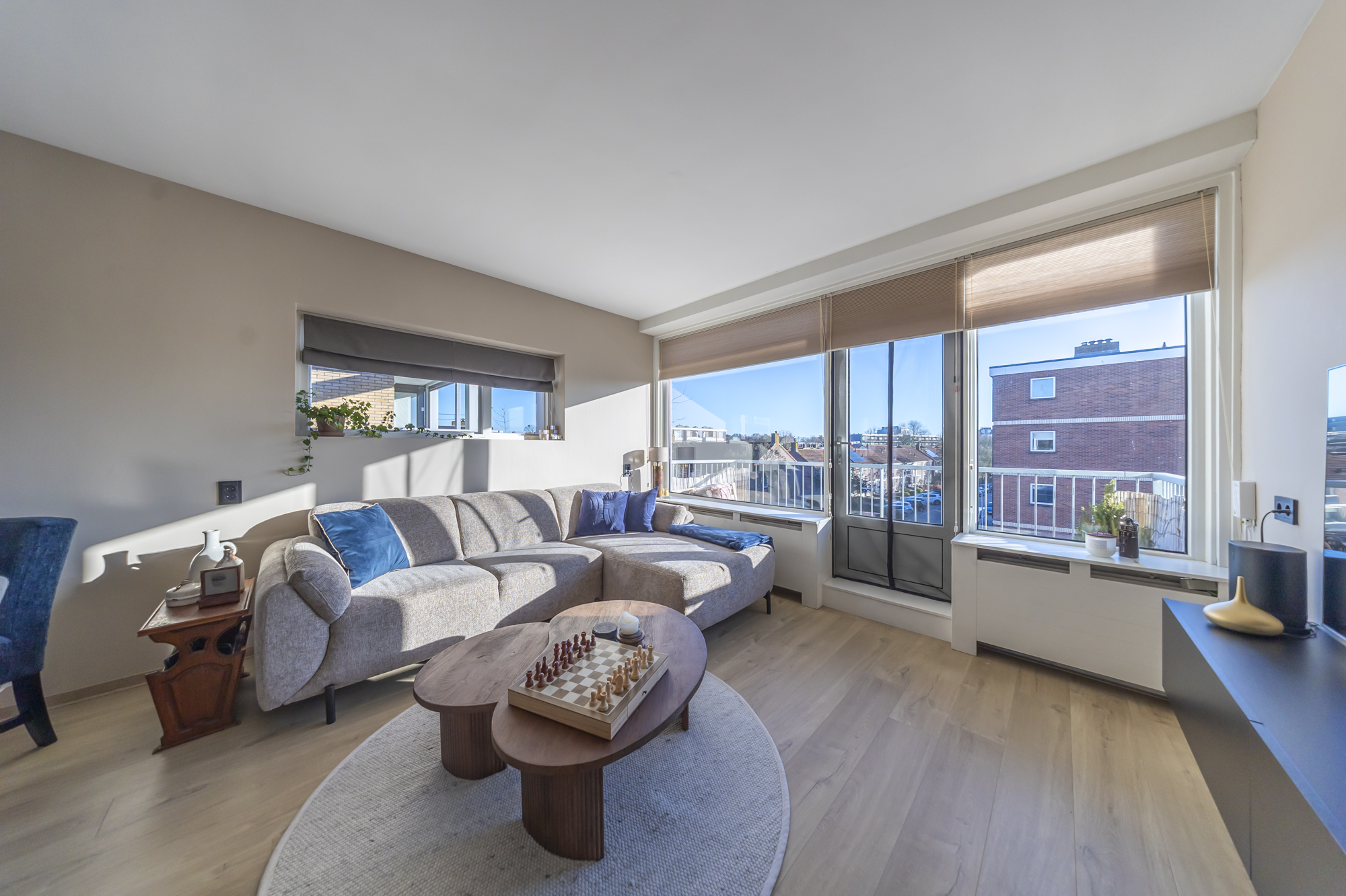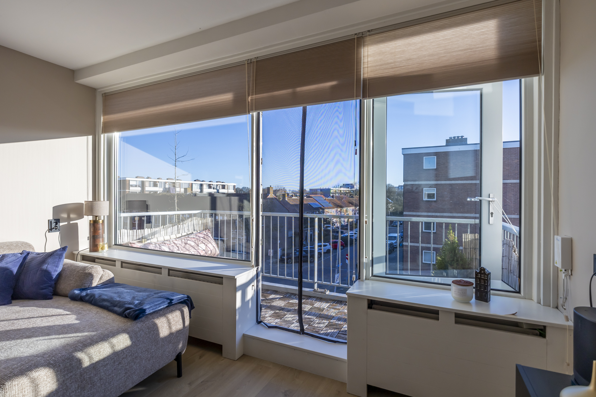 Entree in de hal met garderoberuimte, meterkast en de technische ruimte met bergmogelijkheden, de witgoedaansluitingen en de cv-ketel (2020). De tussenhal staat in directe verbinding met de keurige toiletruimte voorzien van een zwevend toilet, de badkamer, de slaapkamers en de woonkamer. Deze royale woonkamer is uitgerust met airconditioning en profiteert van veel licht dankzij de grote raampartijen en de zuidelijke ligging. Het zitgedeelte ligt bij het zonnige, zuidgerichte balkon (ca. 7 m²) met vlondervloer. De moderne open keuken (2018) in L-opstelling is compleet uitgerust met een vaatwasser, een keramische kookplaat met rvs-afzuigkap, een koelkast, een vriezer en een combi-oven. Hier is ruimte voor een eethoek en vindt de toegang plaats tot het tweede (inpandige) balkon. Beide slaapkamers bevinden zich aan de straatzijde en zijn voorzien van kunststof kozijnen met dubbele beglazing. De keurige en moderne badkamer (eveneens geplaatst in 2018) is uitgerust met een inloopdouche met regendouche en thermostaatkraan, een wastafel met bijpassend meubel en een designradiator.