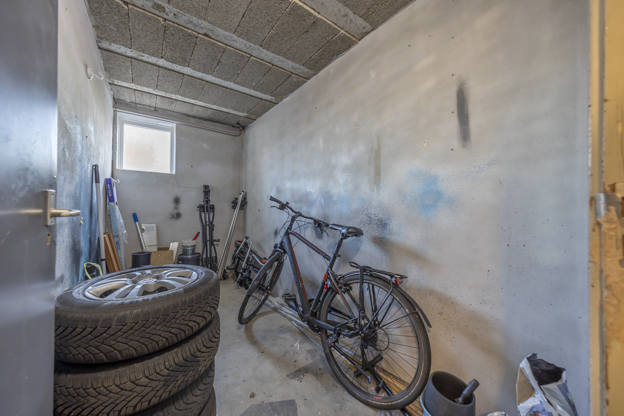 De afsluitbare berging (ca. 6 m²) ligt op de entresol.