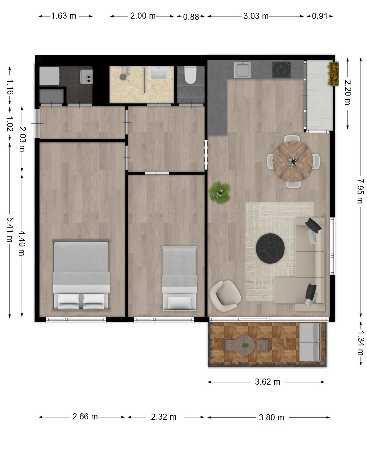 Dit tot in de puntjes afgewerkte appartement is in 2018 geheel gerenoveerd en heeft een woonoppervlakte van circa 70 m². Je beschikt over twee slaapkamers, een moderne badkamer met separaat toilet en een technische ruimte met de cv-installatie (2020) en de witgoedaansluitingen.