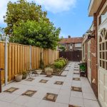 De grotendeels betegelde achtertuin is gelegen op het zuidoosten en beschikt over een praktische berging en achterom.