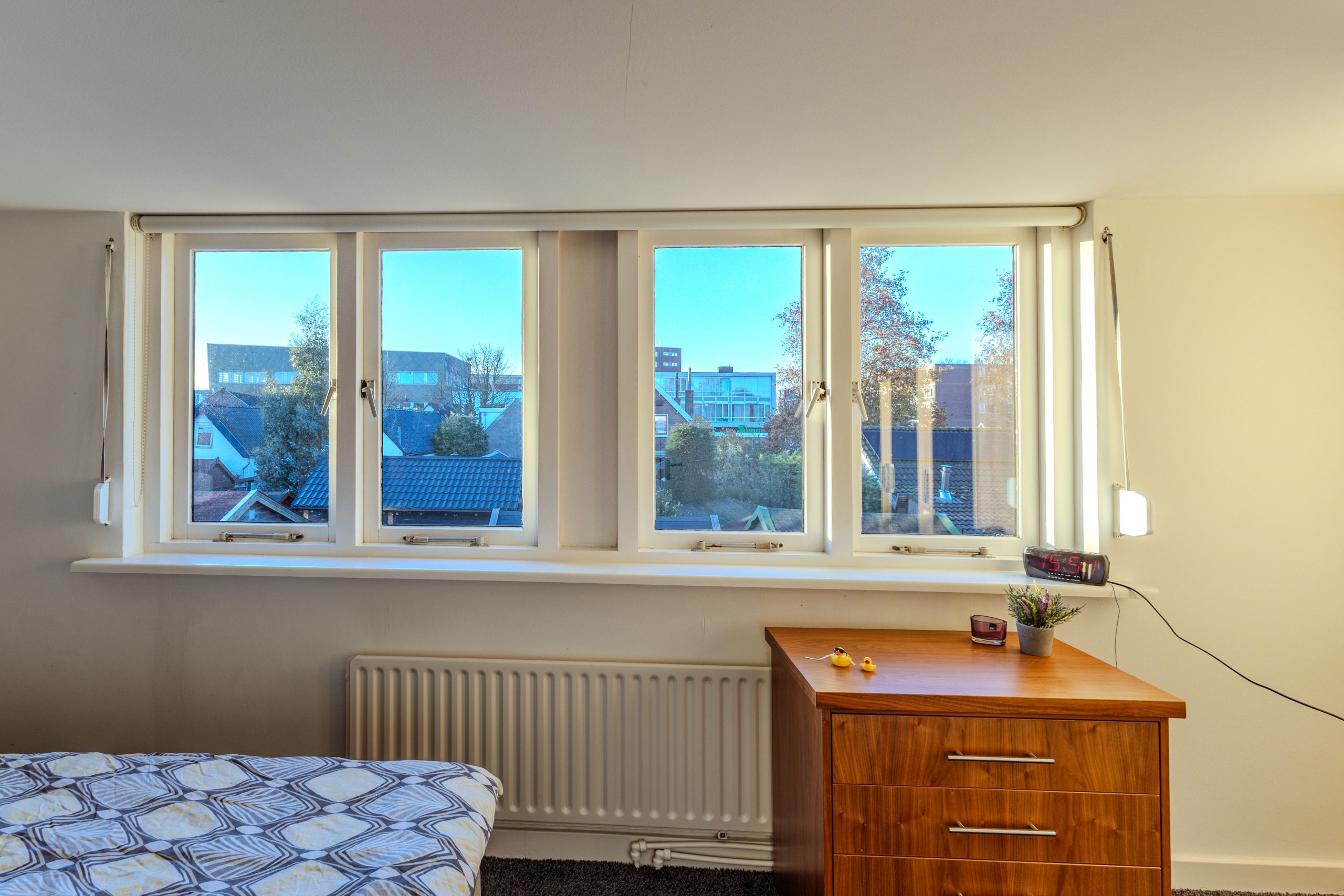 De overloop biedt toegang tot de twee slaapkamers, de badkamer en de trapopgang. De ruimste slaapkamer is dankzij de dakopbouw royaal van formaat. De raampartij is voorzien van een rolluik en de kamer beschikt bovendien over airconditioning. De tweede slaapkamer met dakkapel is gelegen aan de straatzijde en beschikt daarnaast over vaste kastruimte. De geheel betegelde badkamer is uitgerust met een 2de toilet, een wastafelmeubel, designradiator en een inloopdouche.