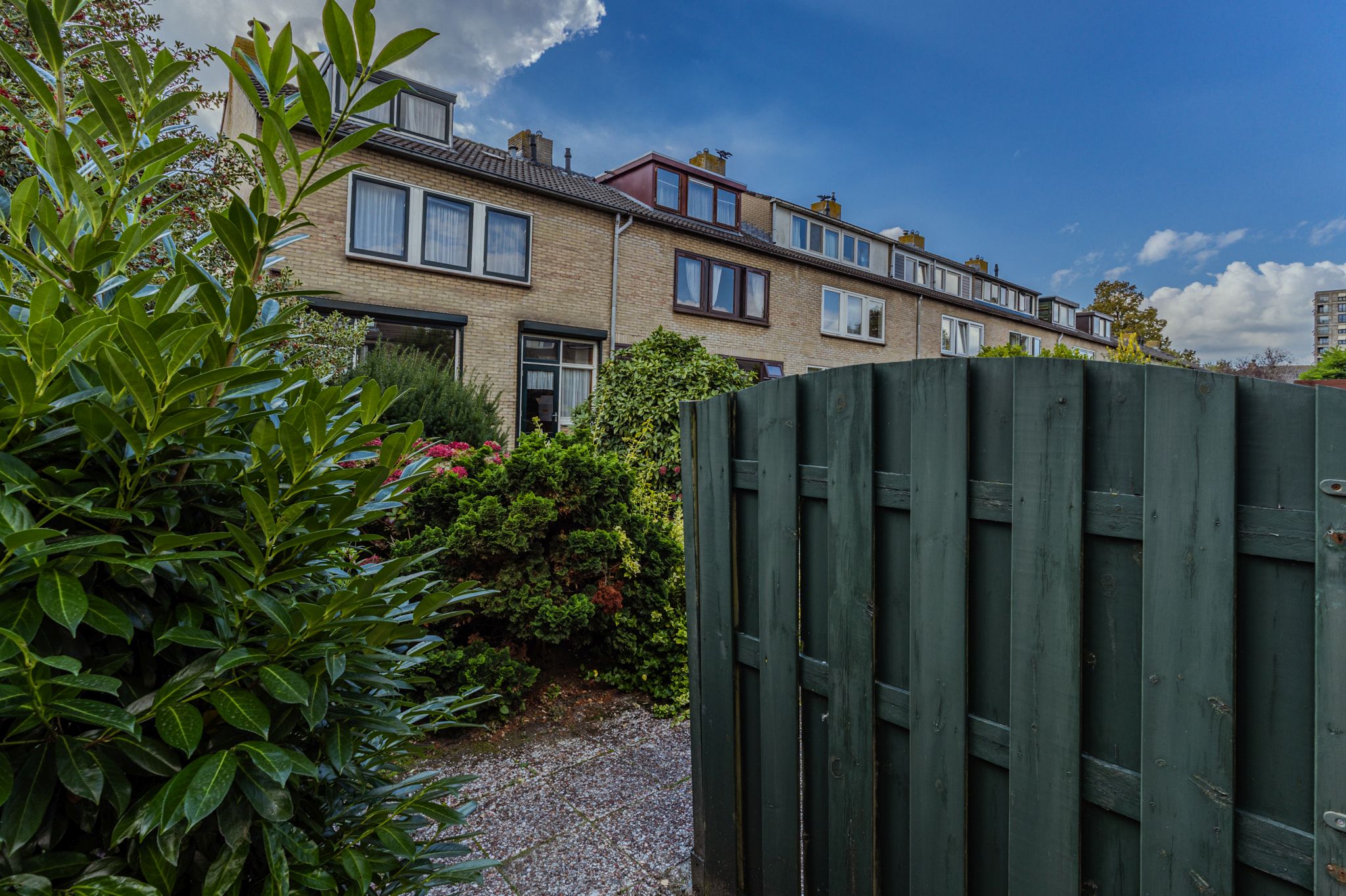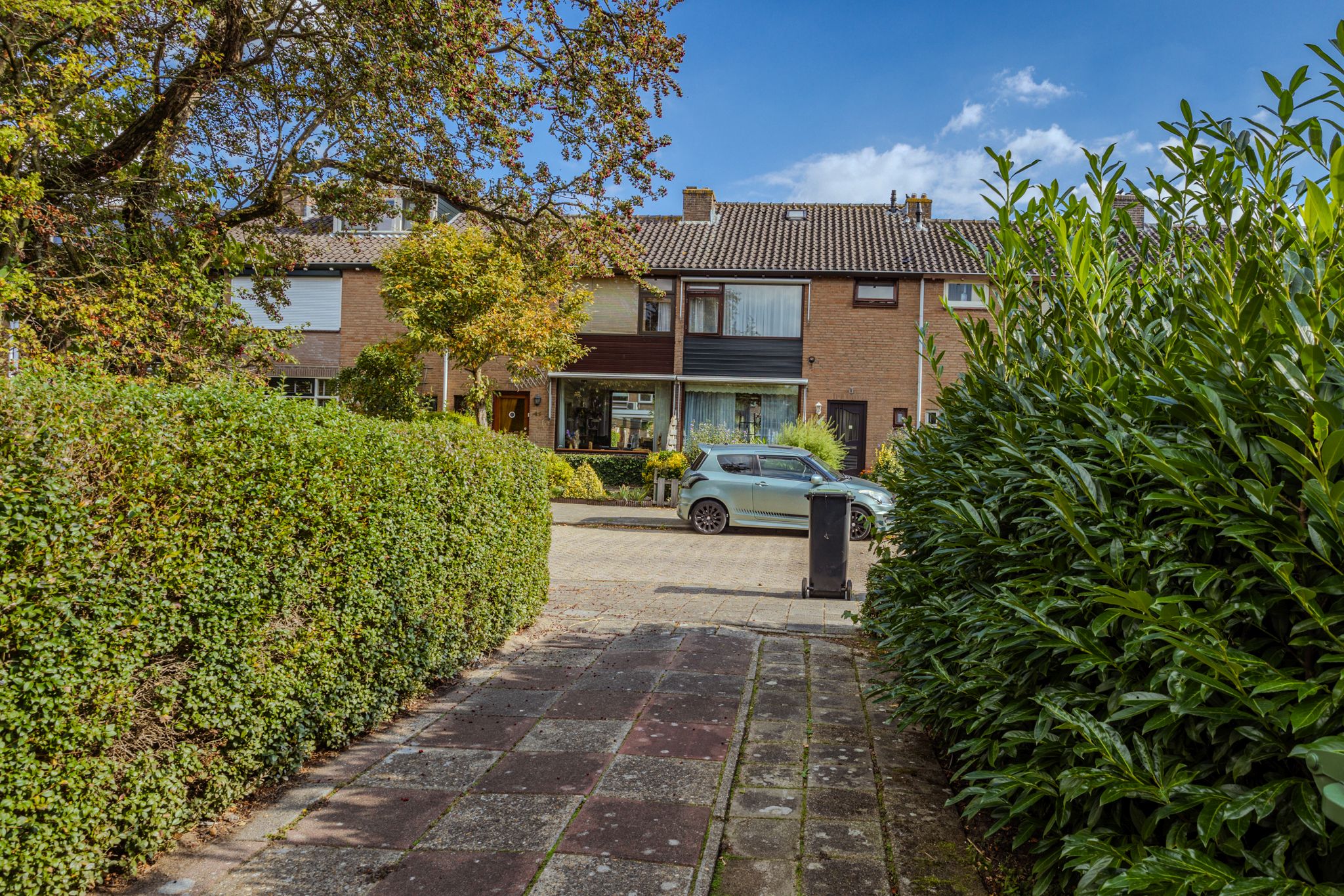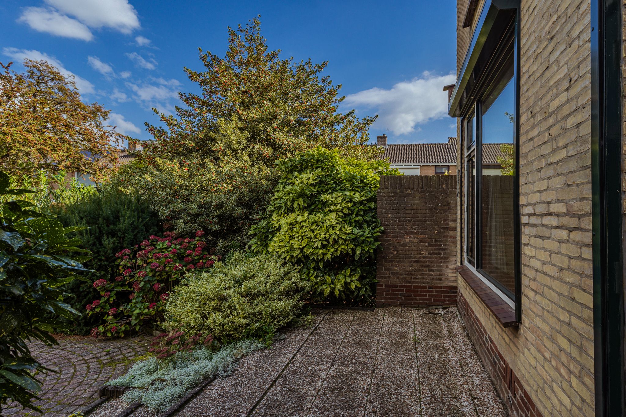 De woning en de garage cq. berging zijn gelegen op een royaal perceel welke grotendeels is voorzien van een grote diversiteit aan struiken, bomen en overige beplanting. De zonnige voortuin is ca. 6 meter diep, via een pad van grindtegels vindt de entree plaats tot de woning. Dit grindpad wordt verder omgeven door buxussen, struiken en heesters. Naast de woning bevindt zich een 6 meter brede zijtuin waar eveneens een grote diversiteit aan beplanting te vinden is. Ook de achtertuin (ca. 190 m²) is rijkelijk uitgerust met struiken en beplanting. Verder vind je hier een ruim betegeld zonneterras, sierbestrating en grindtegels. De garage cq. berging is te bereiken via de oprit welke vanuit de Nachtegaallaan toegankelijk is. Er is hier ruim plek voor het parkeren van een auto.