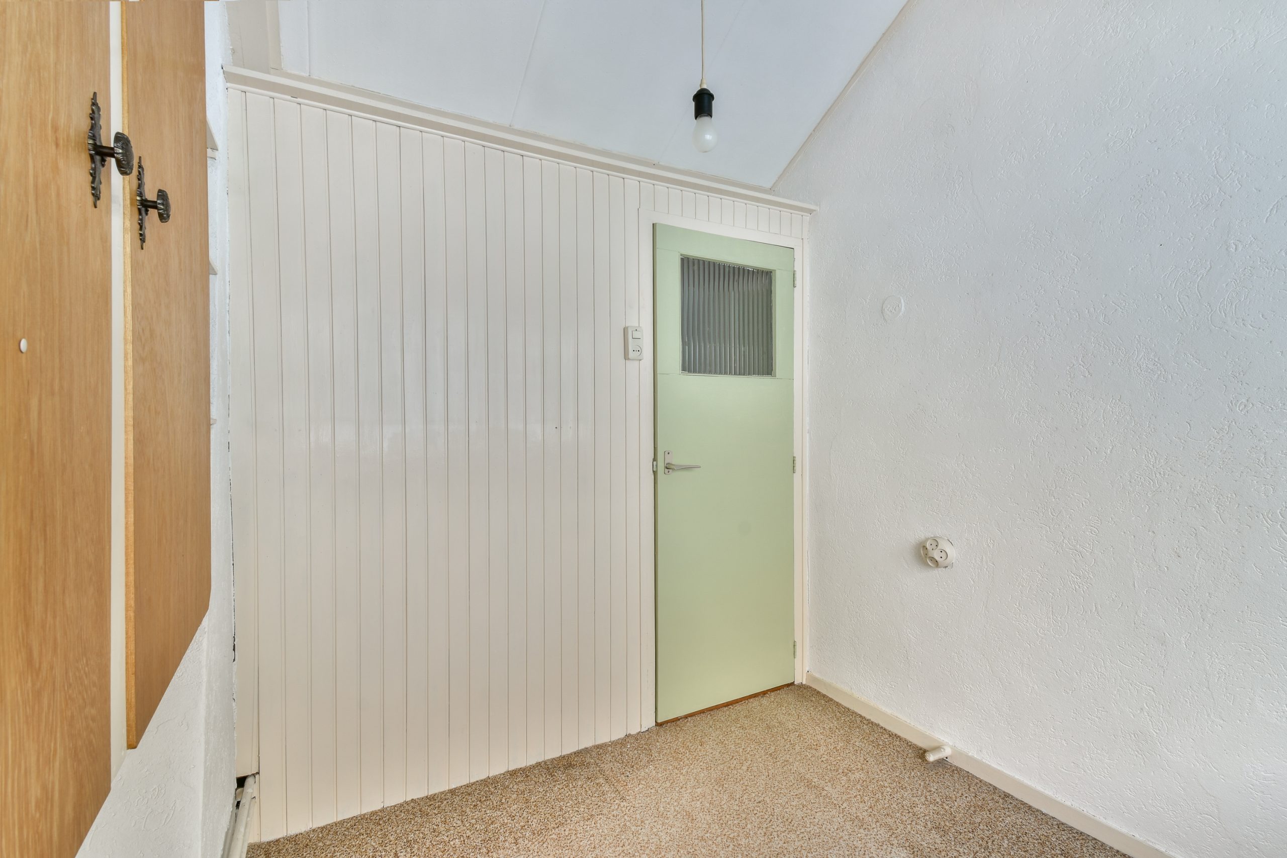Entree in de hal met de volledig betegelde toiletruimte voorzien van een zwevend toilet en een fonteintje, de trapopgang, de garderoberuimte, de trap- en meterkast. Vanuit de hal is er toegang tot de keuken en de woonkamer. Deze zonnige doorzonwoonkamer biedt een praktische vaste bergkast en grote raampartijen met een mooi zicht op de landelijke omgeving. Aan de voorzijde is voldoende ruimte voor een zitgedeelte, terwijl de achterzijde zich uitstekend leent als eetgedeelte. Het raam in de achtergevel is voorzien van een screen en een zonnescherm. De keuken is geplaatst in een parallelle opstelling en beschikt onder meer over een (gas)kookplaat, losstaande vaatwasser en magnetron, ingebouwde oven en een koel-vriescombinatie. Vanuit de keuken is de achtergelegen tuin te bereiken.